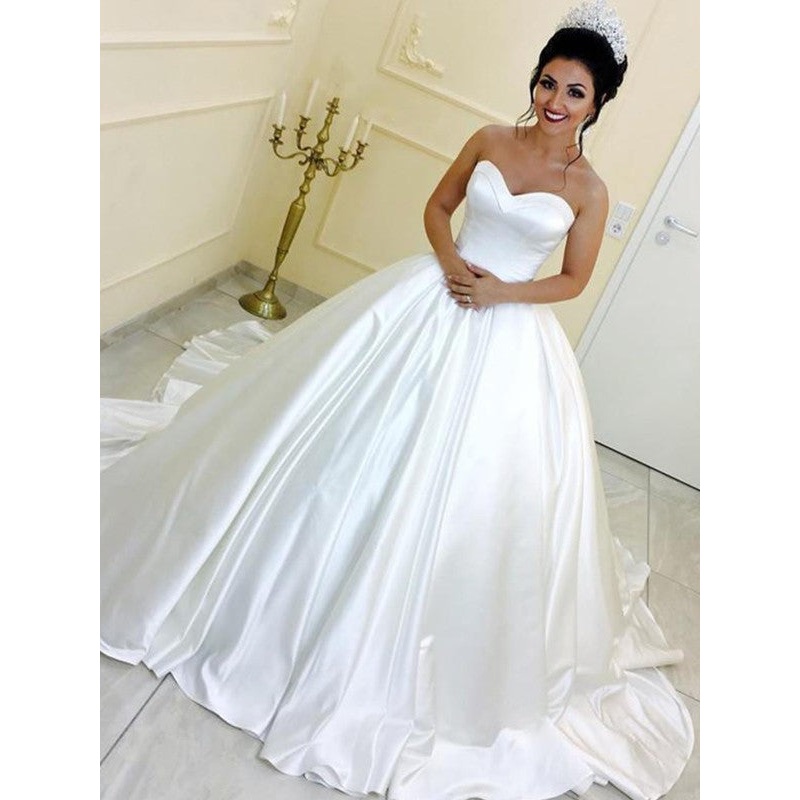 Ball Gown Sweetheart Satin Sleeveless Sash/Ribbon/Belt Cathedral Train Wedding Dresses