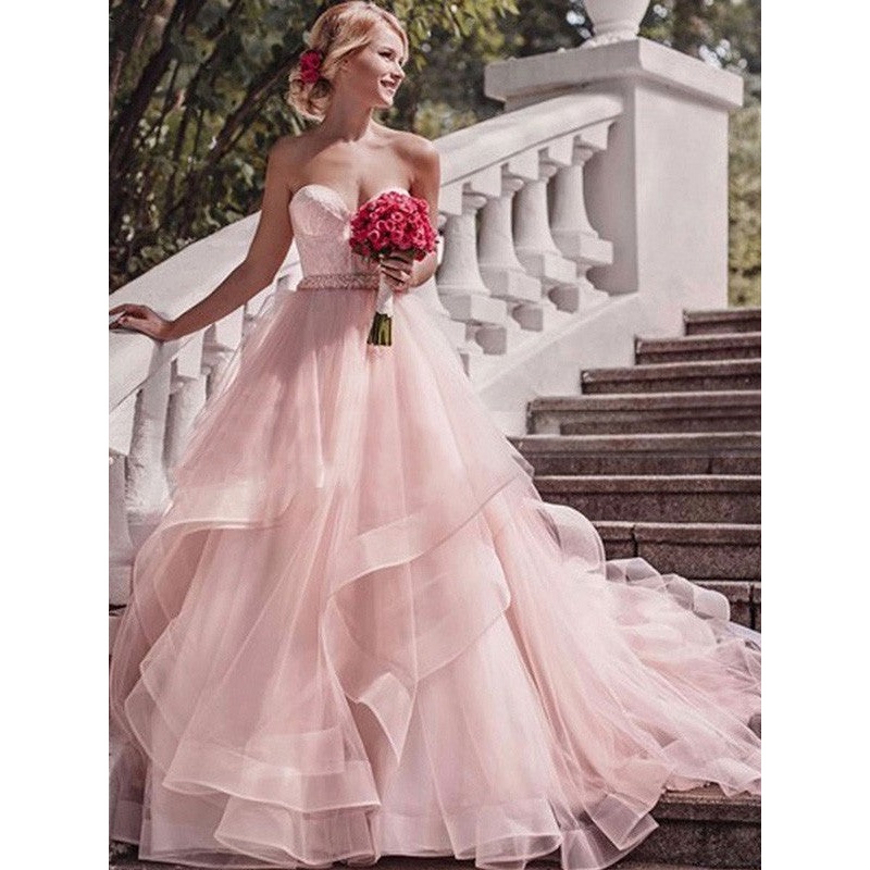 Ball Gown Sweetheart Sleeveless Court Train Layers Organza Wedding Dresses