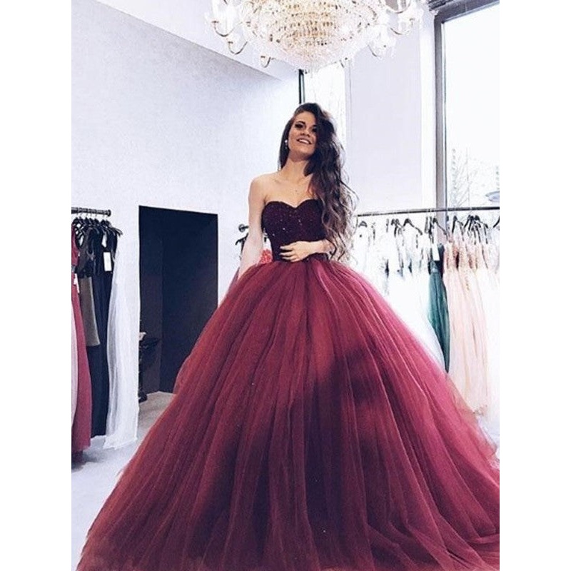 Ball Gown Sweetheart Sleeveless Floor-Length Beading Tulle Dresses