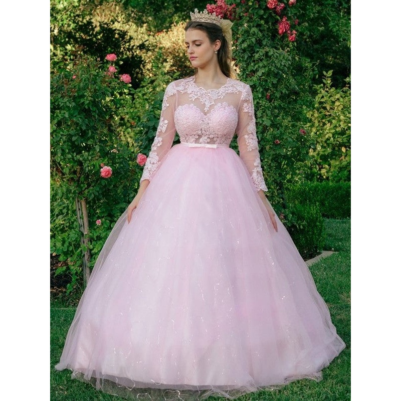 Ball Gown Tulle Scoop Lace Long Sleeves Sweep/Brush Train Dresses