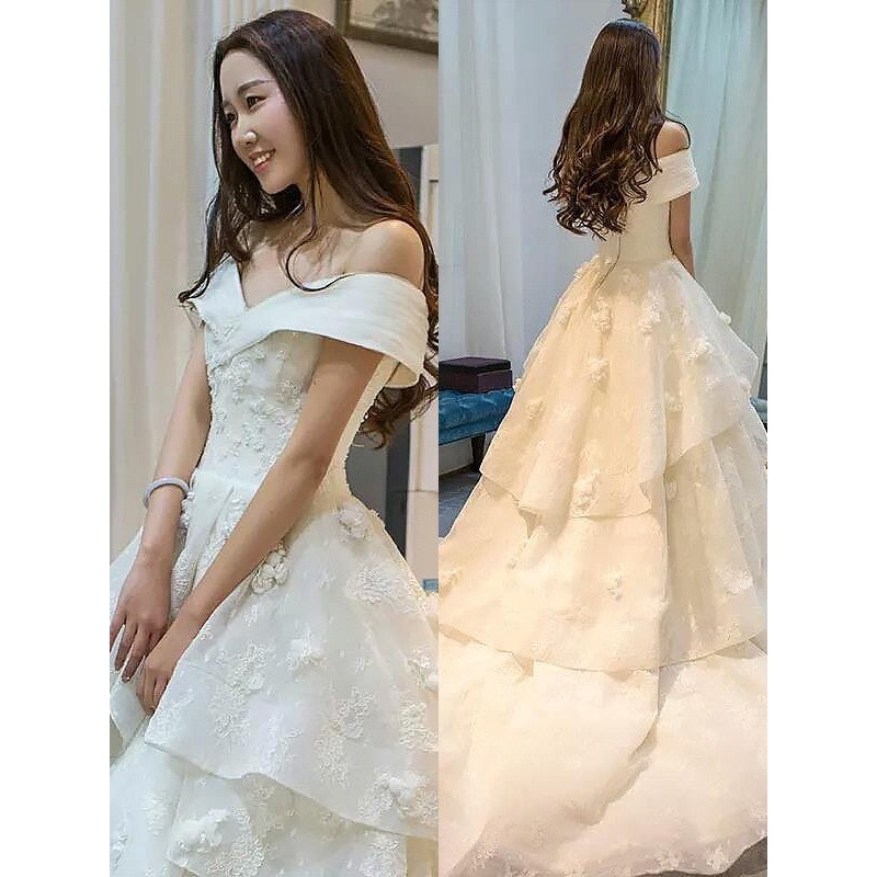 Ball Gown Tulle Sleeveless Court Train Off-the-Shoulder Wedding Dresses