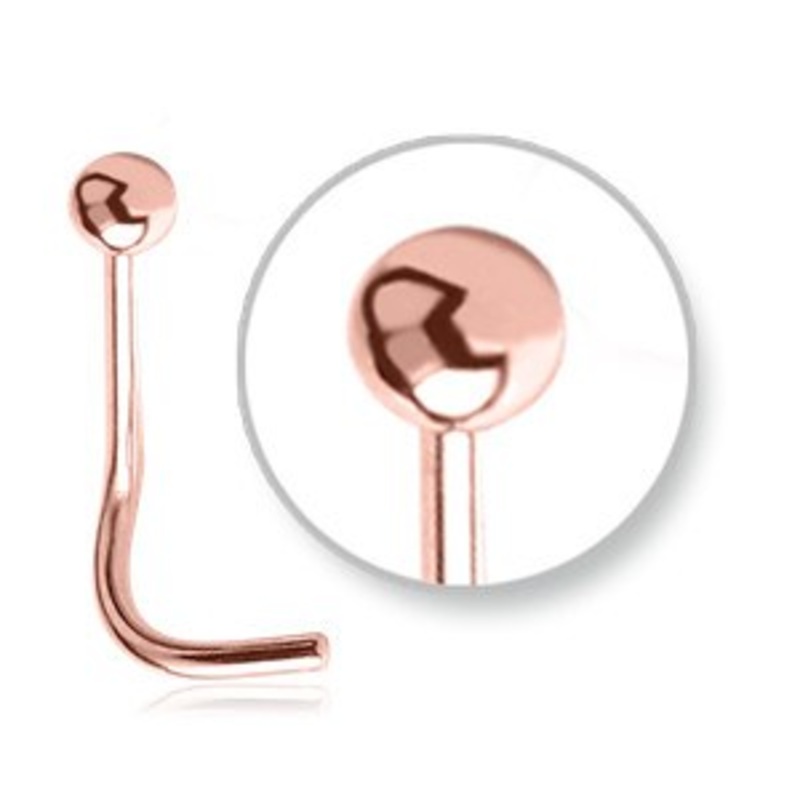The nostril screw is made from rose gold PVD coated 316L stainless steel. The ball stud has a 2mm diameter. Choose your size below.