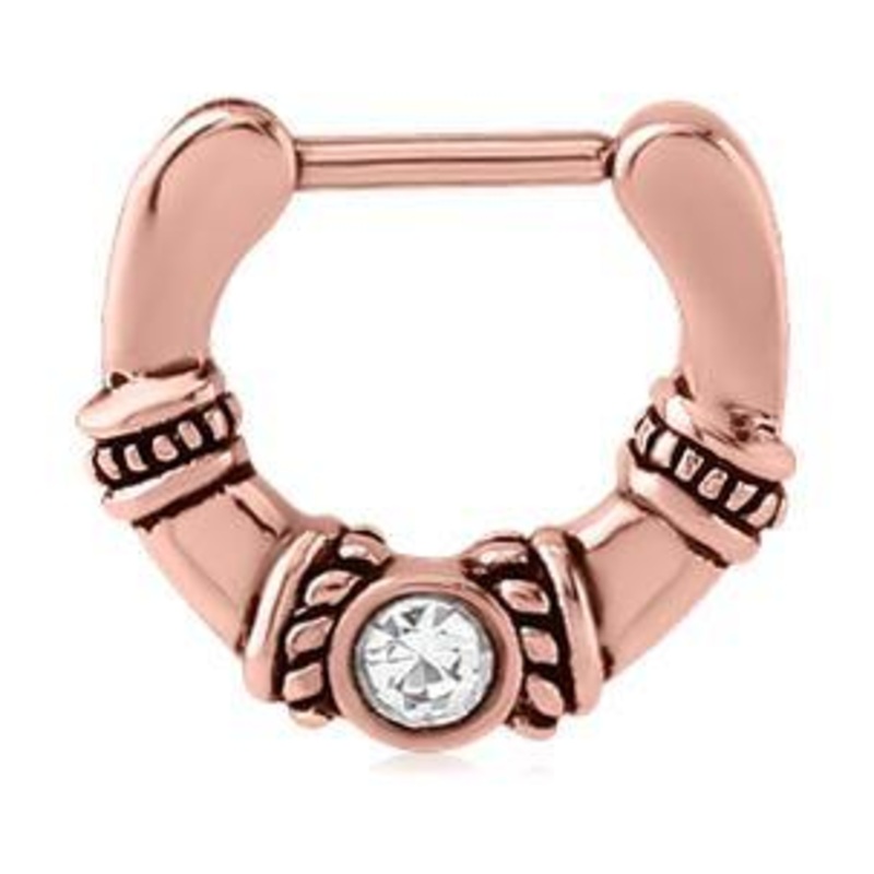 Banded Rose Gold Septum Clicker 16g – 1/4″ diameter (6mm) Clear Rose Gold Stainless