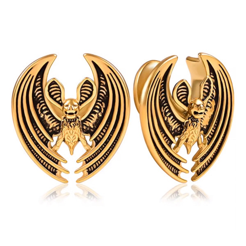 These bat saddle spreaders are made from gold PVD coated 316L stainless steel. We recommend buying these one size smaller than the double flare plugs you normally wear. Choose your size below.