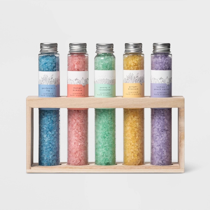 NewBath Crystal CollectionPour a Handful Into Warm Bath WaterStir Water to Help Dissolve Bath CrystalsStep Into the Tub and RelaxWash Tub After UseUse Only as DirectedSize : 21.16 ozIncludes :Gardenia + FigMango MimosaPeony + RosewaterGinger BlossomLychee