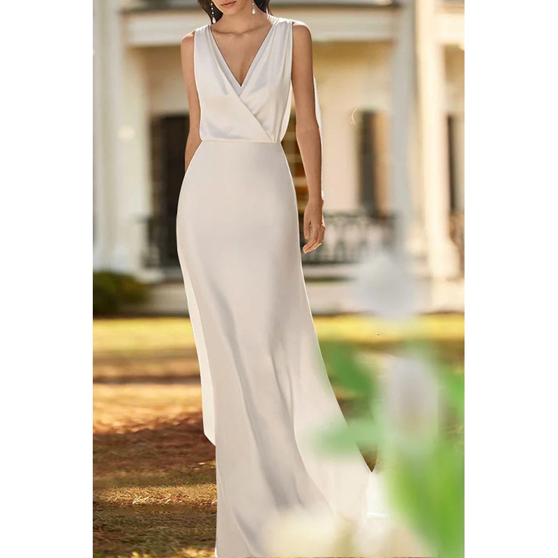 Beach Backless Hall Leisure Wedding Dress Tight V-neck Summer Bride Dress