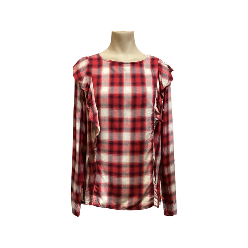 NewRuffled long sleeve shirt Color Red Size SmallWe are so excited to let everyone know that our Pacific Grove store is now open!! We are offering curbside pickup and local delivery for qualifying online orders. We appreciate your order!If you have any que