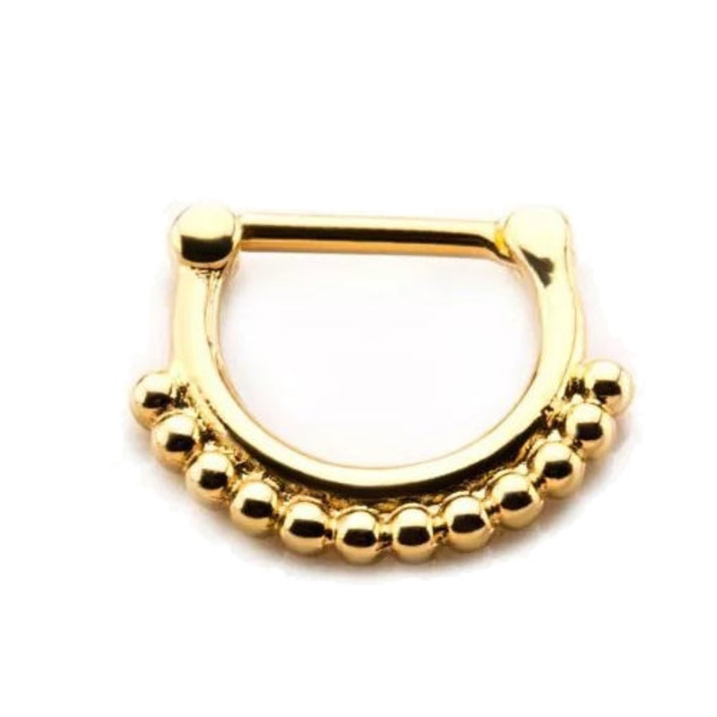 Beaded Gold Septum Clicker 16g – 5/16″ diameter (8mm) Gold Stainless