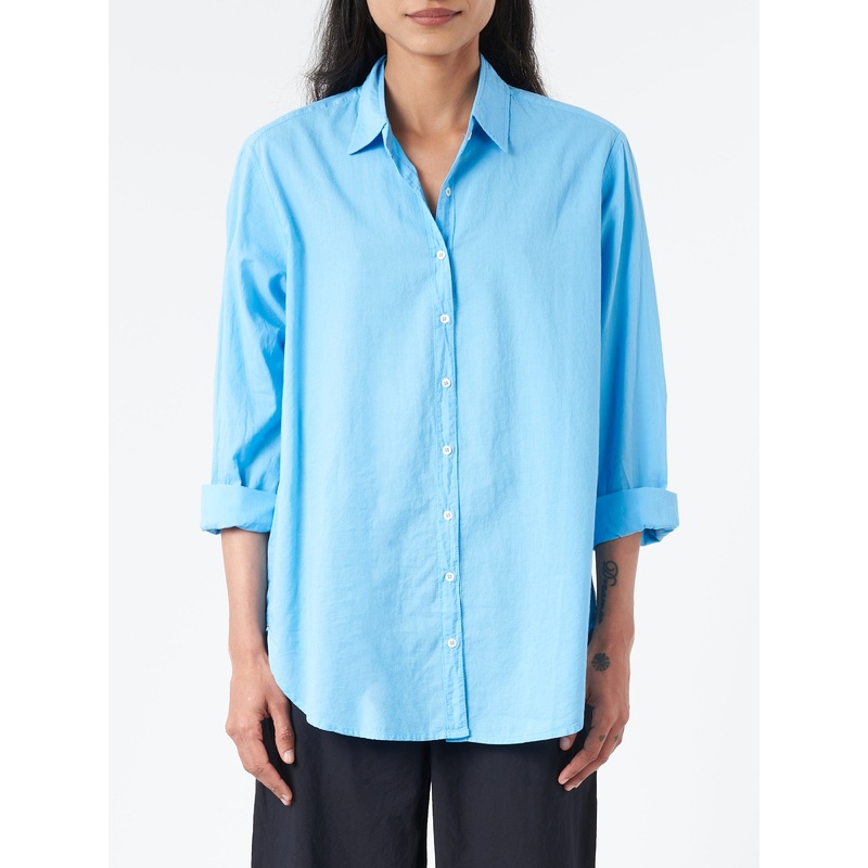 Everyones favorite boyfriend shirt, the Beau Shirt from Xirena is an essential basic. Made from classic lightweight cotton poplin for a lived-in look and feel.Point collarFront button-up closureBox pleated back yokeLong sleevesRelaxed and generous fitRound