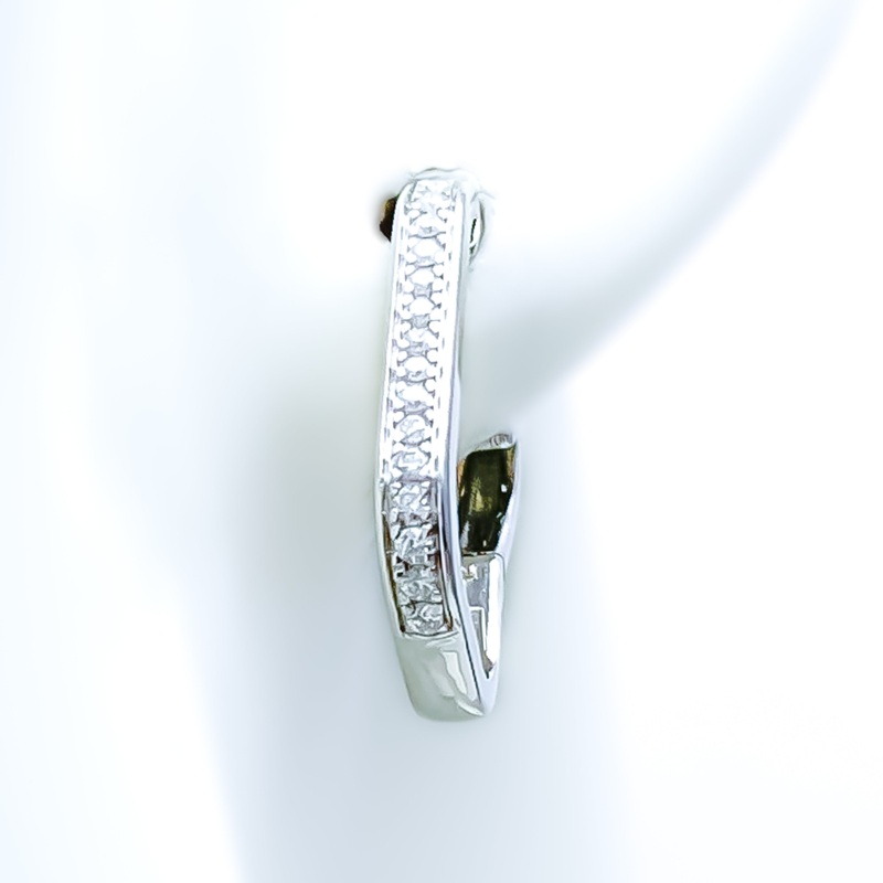 Timeless and radiant, these 18k white gold Bali earrings capture classic elegance with a modern touch. Weighing 3.3 grams, their luminous white gold finish enhances the brilliance of 0.20ct round brilliant-cut diamonds, graded G-H in color and VS in clarity, adding a subtle yet captivating sparkle. With a refined 0.7-inch length, these delicately designed earrings offer a graceful yet eye-catching presence. Secured with a reliable push-lock mechanism, they provide both comfort and durability. Perfect for those who appreciate enduring beauty, these Bali earrings are a versatile and sophisticated addition to any fine jewelry collection.
