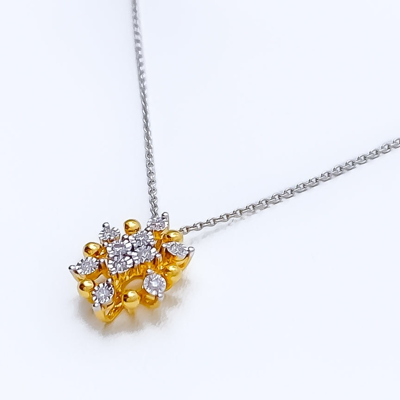 The Beautiful Floral Diamond + 18k Gold Pendant, with a gold weight of 1.4 grams, is an exquisite piece that blends natural beauty with luxurious elegance. Crafted in 18k yellow gold, it features a charming floral design, enhanced with a diamond weighing 0
