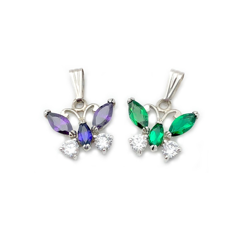 Precious Metal: 14 Karat White GoldGemstone:Cubic ZirconiaColor:White (Round)Purple and Green (Marquise)Contact us for availabilitywith Diamonds.Height: 27.95 mmWidth: 21.12 mmAvailable Weight: ~4.5 grams*To check availability in other sizes and designs pl