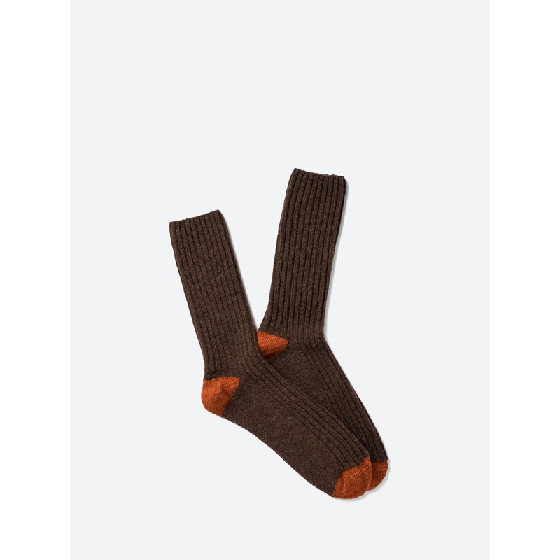 These warm, rib-knit socks will keep you cosy all season long. The wool is spun in France from upcycled sweaters - even the polyamide is recycled!Ribbed calf-height socksContrast heel and toeHeight: 27 cmMaterialsFabric Content: 70% wool, 28% polyamide, 2%