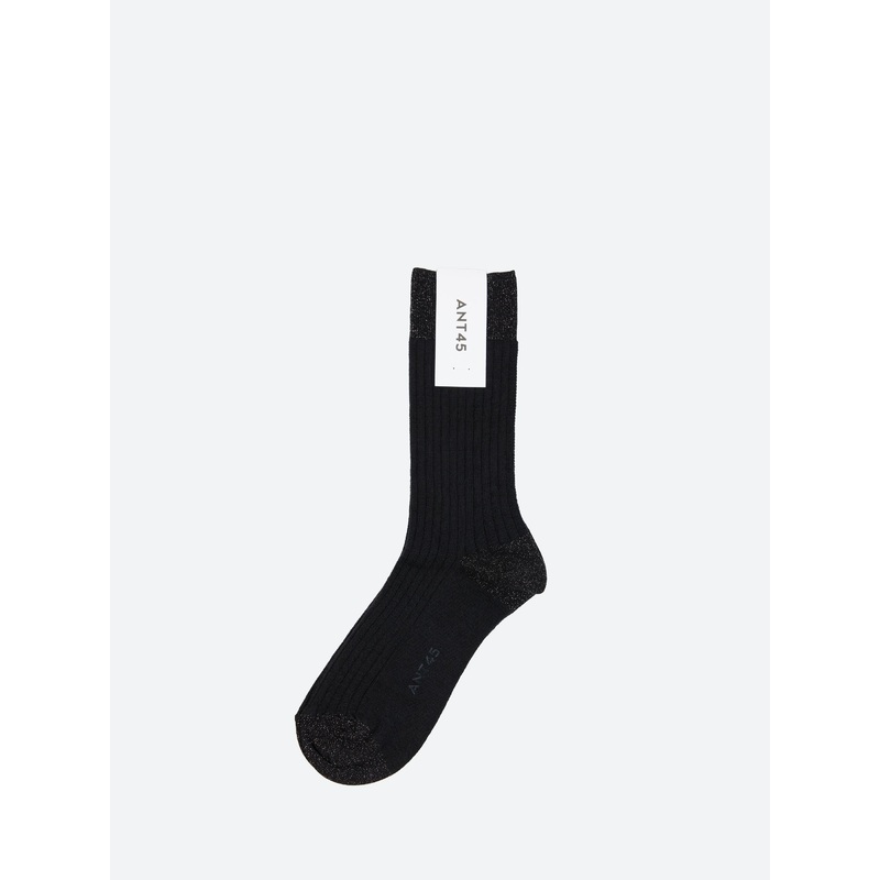 Short socks in wool, solid color ribbed, heel tip and cuff in lurex.
