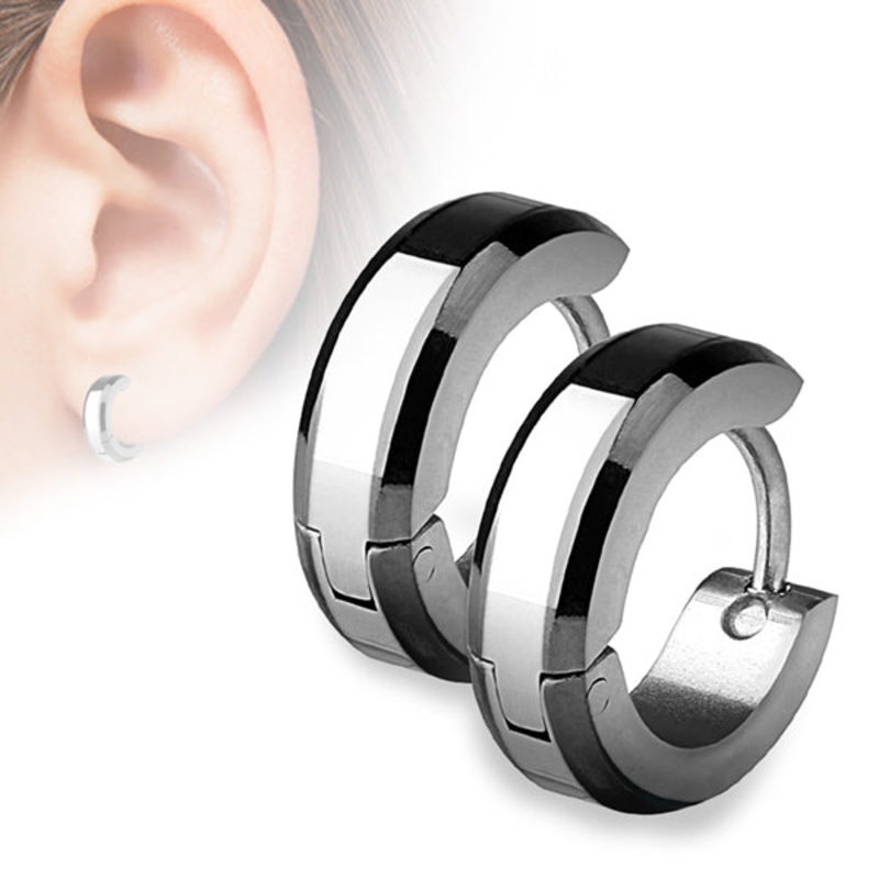 These 20 gauge bevel hinged hoop earrings are made from 316L stainless steel. They have an interior diameter of 5/16″. Choose your bevel finish below.