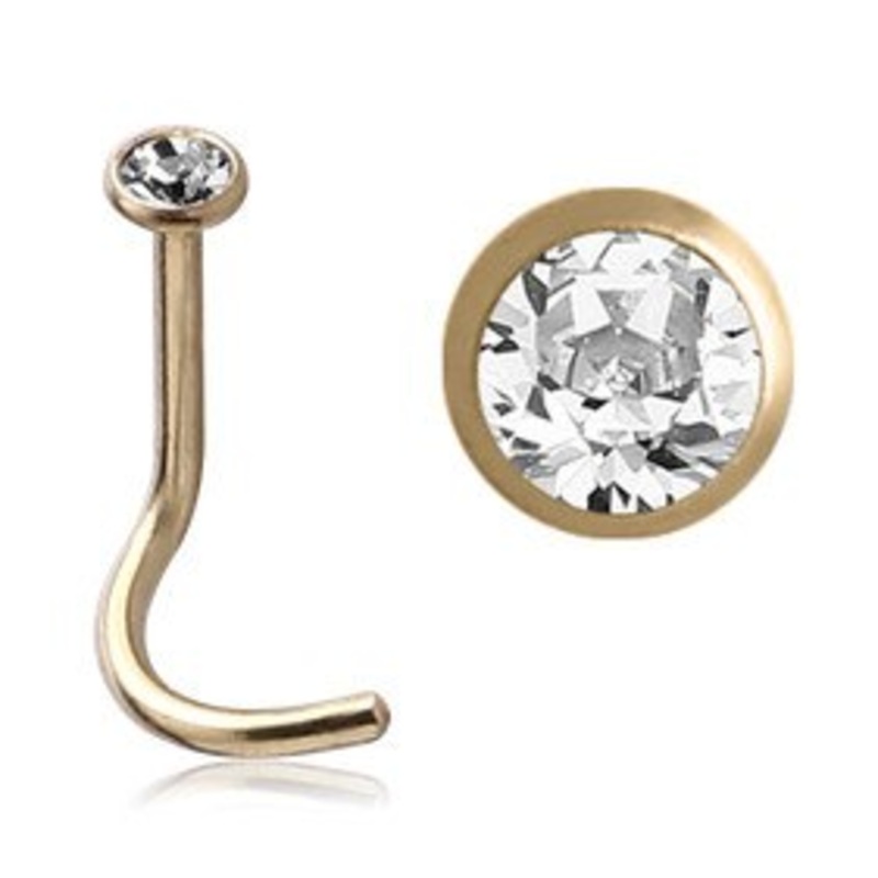 The 20 gauge nostril screw is made from zircon gold PVD coated 316L stainless steel. The 2.35mm bezel-set cz is available in clear only. Choose your size below.