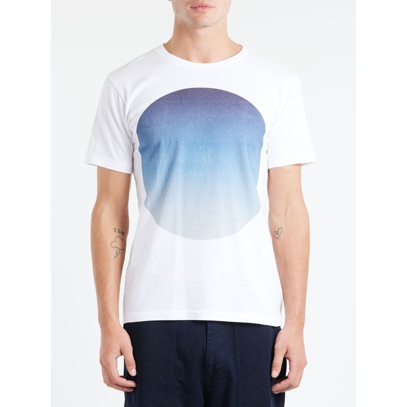A large circle reminiscent of the sun and moon is expressed in gradation using an inkjet printing method.CrewneckGraphic print at the frontShort sleevesStraight hemMaterialsFabric Content: 100% cottonMade in JapanSize GuideMckinnon wears size M. He is 6'0"