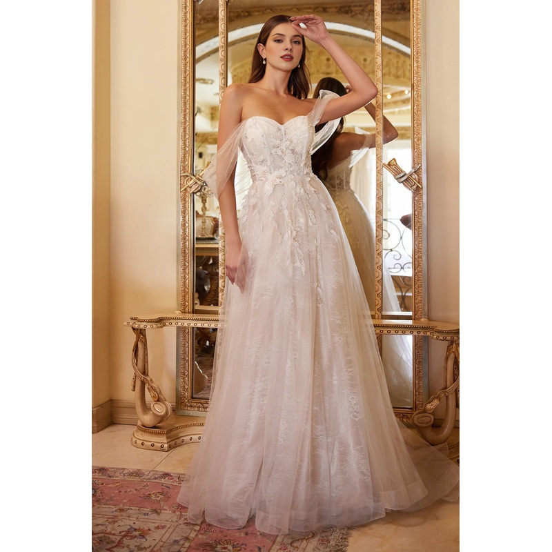Bird decoration long off shoulder wedding dress