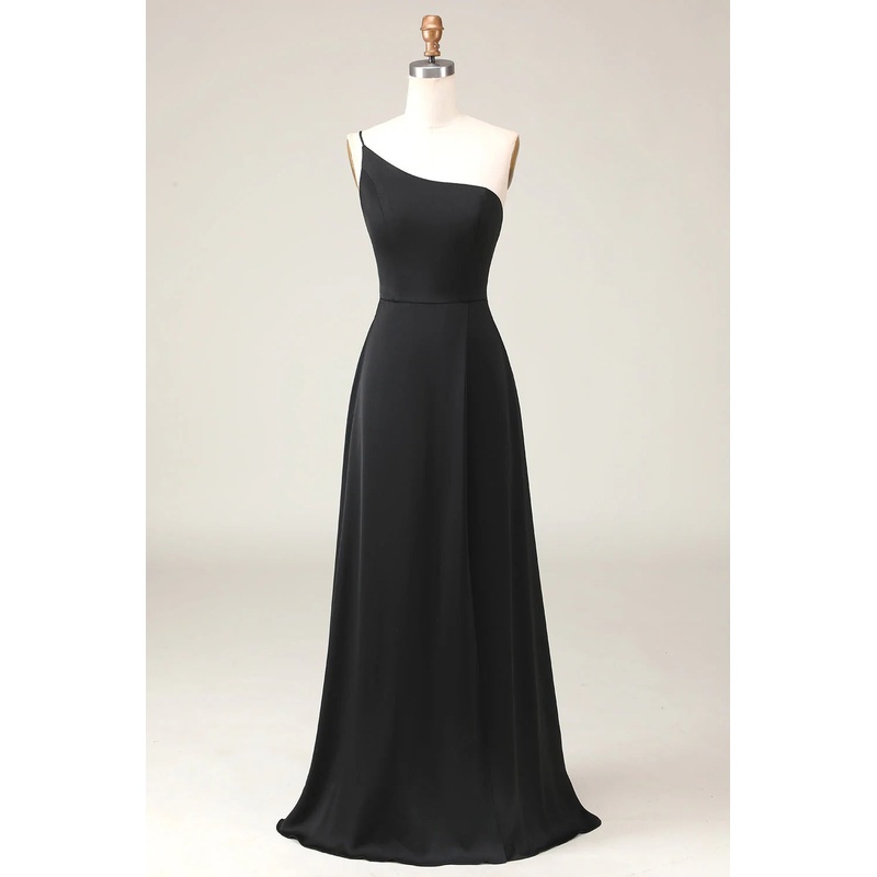 Black A-line Chiffon Shoulder to Floor Bridesmaid Dress