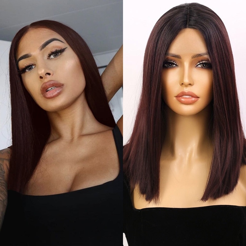Black and Burgundy Coloured Synthetic HD Lace Front WigMaterial Grade: High-Temperature FiberTexture: StraightLace Color: transparentCap Size: Average SizeStyle: TrendyBase Material: Swiss LaceWeight: 185gLength: 14InchHair Style: Straight