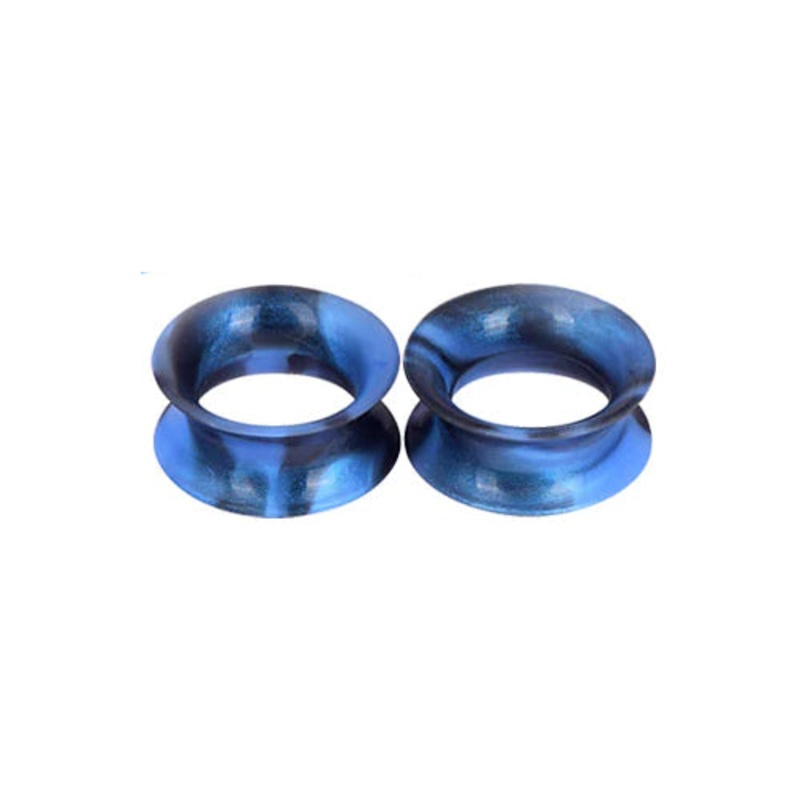 These double flare thin-wall tunnels are made from black and blue silicone. They have a wearable area of 5/16" between flares. The material is soft and squishy, very comfortable to wear. Choose your size below.