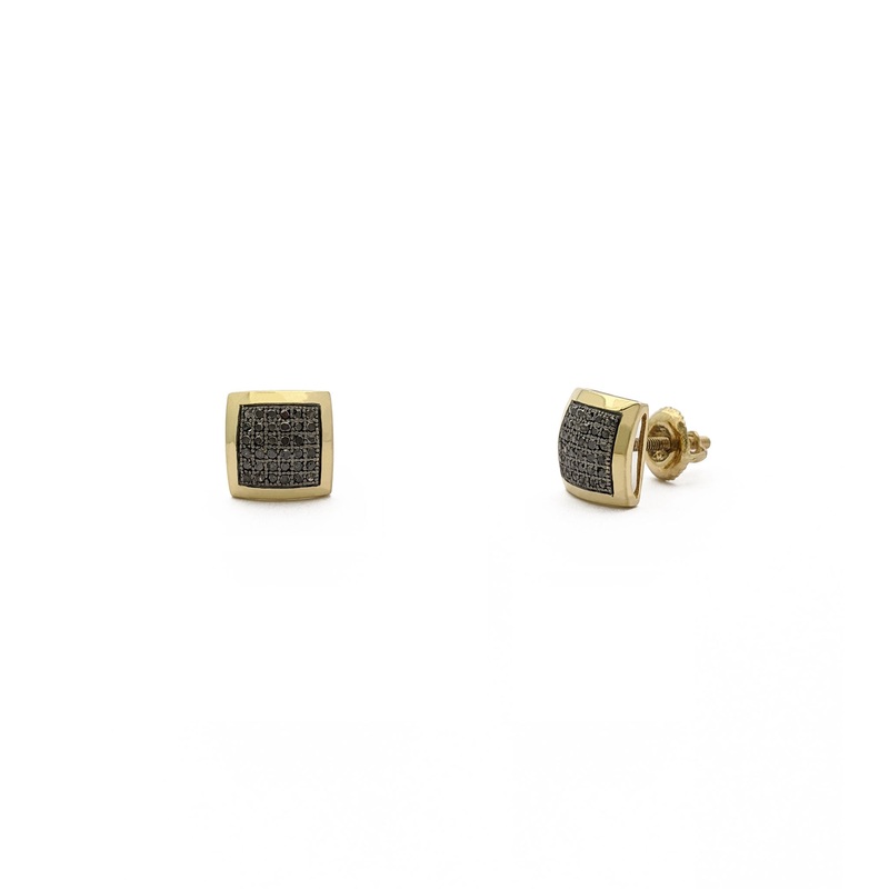 Black Diamond Curvy Square Cluster Stud Earrings (10K)