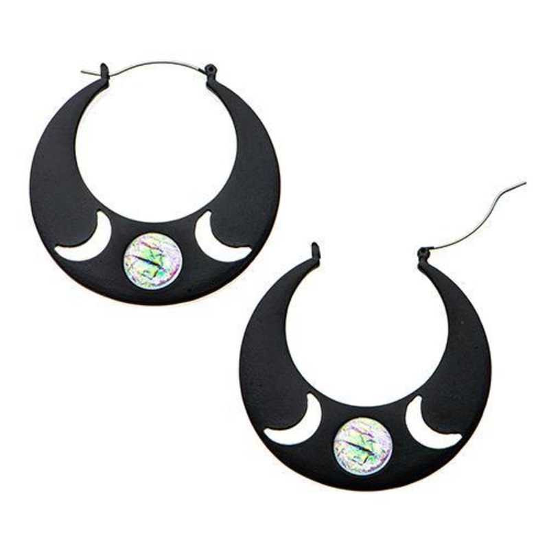 Black Moons & Opal Tunnel Hoops 20 gauge Stainless Steel