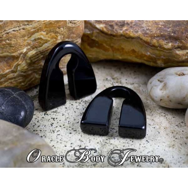 These black obsidian pyramid weights are made by Oracle Body Jewelry. They fit lobes 9/16″ or larger with an insertion gap of 5mm.