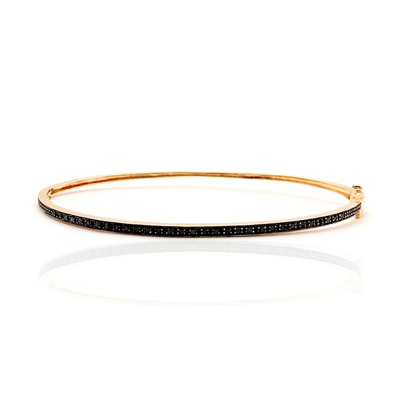 Black Stones Rose Gold CZ Bangle Bracelet (14K)