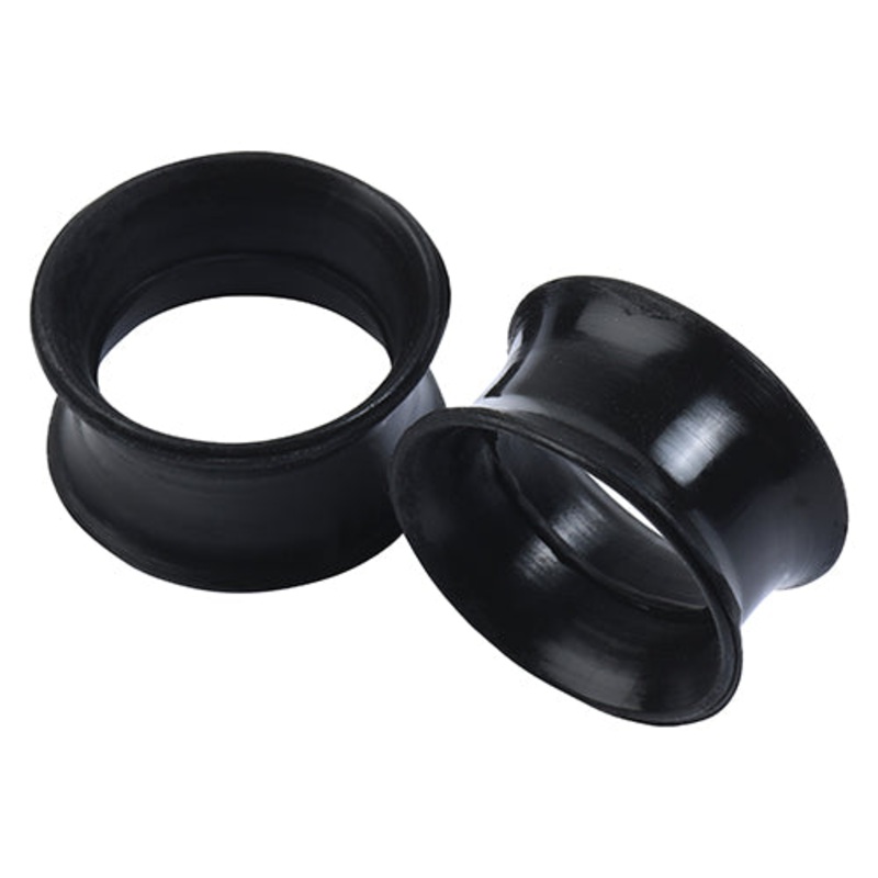 These double flare thin-wall tunnels are made from black silicone. They have a wearable area of 5/16″ between flares. The material is soft and squishy, very comfortable to wear. Choose your size below.