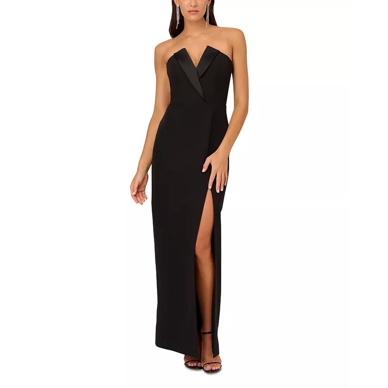 Black V-neck strapless backless long party dress