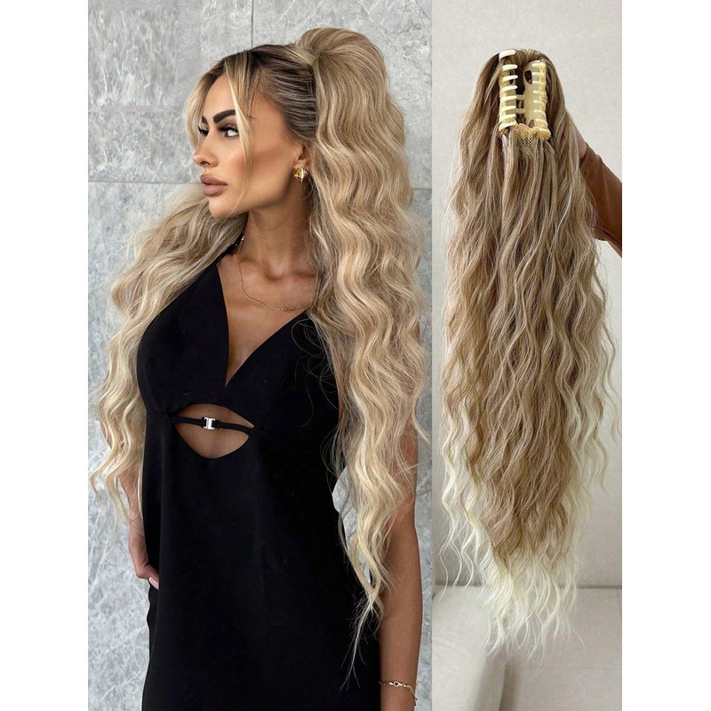 Blonde Ombre Ponytail ExtensionThis beautiful blonde ombre ponytail extension is made from high-quality, heat-resistant fiber. It's perfect for daily use and can be styled to achieve a variety of looks. The natural water wave pattern adds a touch of elegan