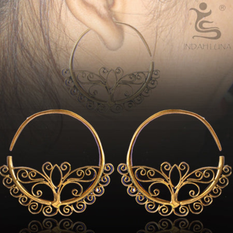 These 16 gauge bloom hoops are made of solid yellow brass and measure approximately 38mm tall x 40mm wide.