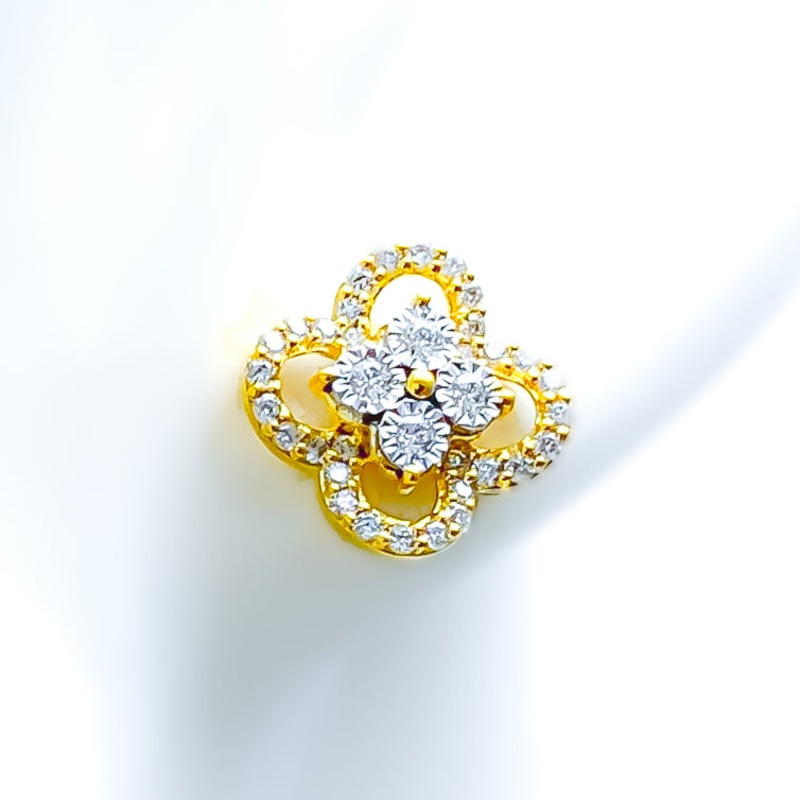 These 18k gold earrings showcase a blooming dual flower design, weighing 3.1 grams. Featuring 0.41 carats of round brilliant-cut diamonds in G-H color and VS clarity, they exude radiant beauty and delicate craftsmanship. Measuring 0.4 inches in length, these elegant tops are secured with screw-back posts for a snug and secure fit. Certified by GGL, they make a perfect choice for those who admire floral elegance paired with sparkling sophistication.
