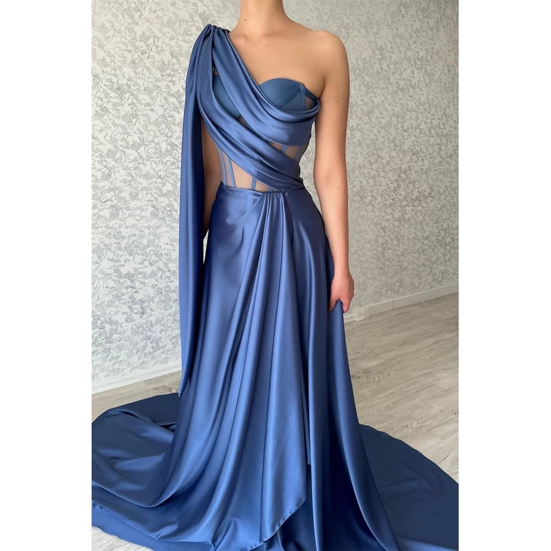 Be the first to review “Blue A-line one shoulder sleeveless long evening dress”