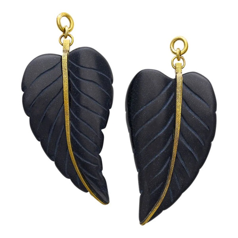 These blue goldstone leaf pendants are made with solid yellow brass by Diablo Organics. You'll get the two pendants only. Our product photo shows the larger, 65mm pair. They need to be combined with hooks/spirals that must purchased separately. Choose your