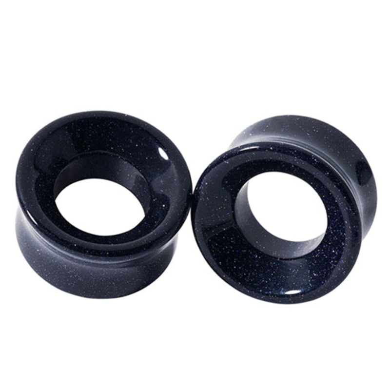 You'll get a matched pair of concave blue goldstone tunnels made by Diablo Organics. Choose your size below.00g to 5/8" =wearable area of 7/16"3/4" to 1" =wearable area of 1/2"1-1/4" to 2" =wearable area of 9/16"