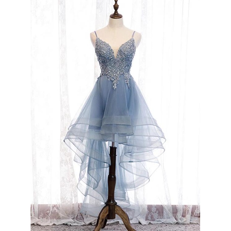 Be the first to review “Blue High Low Tulle V-neckline Straps Party Dress with Lace, Cute Homecoming Dress”