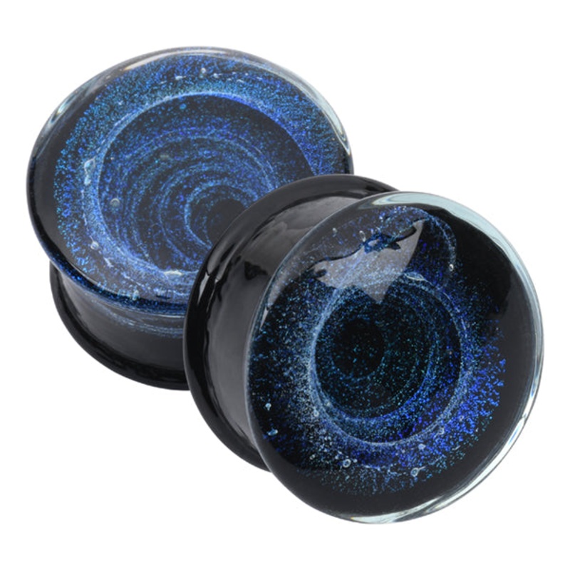 These double flarevortex plugs aremade from hand blown glass. They have a wearable area of approximately 3/8" between flares. Choose your size below.