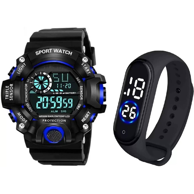 blutechWaterproof Digital Sports Watch for Men’s Kids Watch for Men PACK OF 2 Digital Watch – For Boys Brand – A Digital Watch With LED Shockproof Multi-Functional Automatic