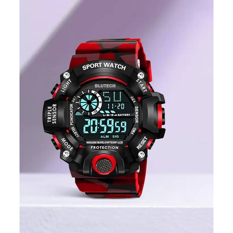 BrandblutechWatch TypeSports Watch, Thin Straps, Thick StrapsDisplay TypeDigitalIdeal ForBoysMechanismQuartzStyle CodeArmy Chronograph Digital Stylish Sports Militray Kids Watches Desinger Luxury Shade 7 Dial Lights Day Date Month Military Pattern Trendy C