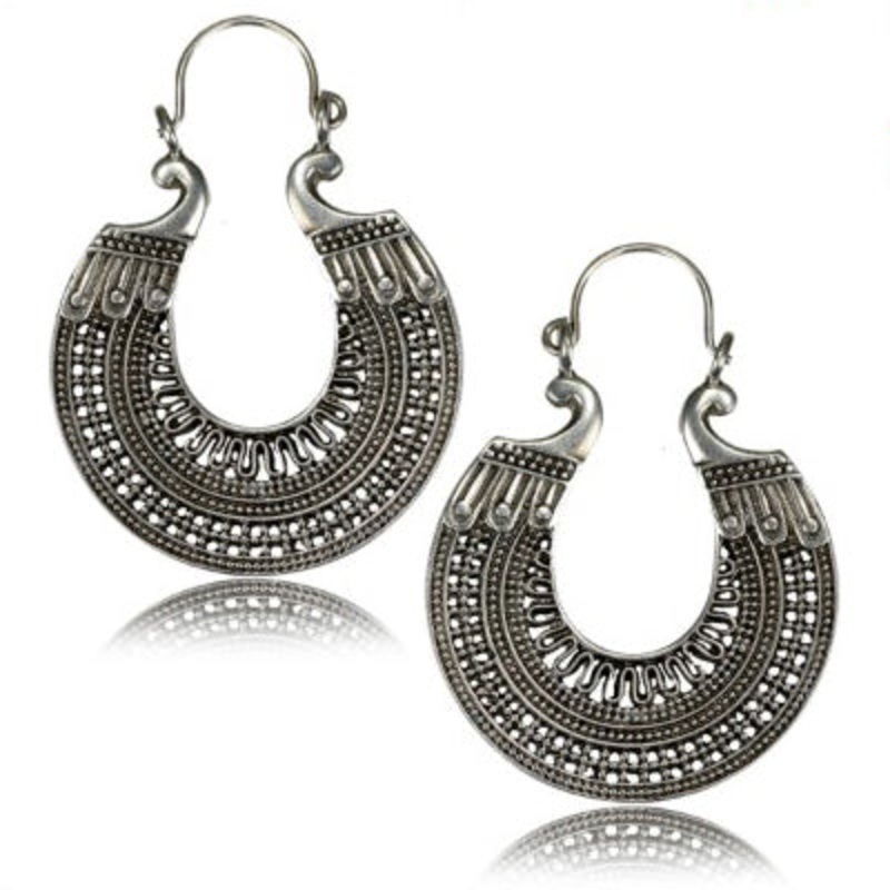 These18 gaugeboho earrings are cast from solidwhite brass and approximately 41mm tall x 34mm wide. The earring wires are made from 316L stainless steel.