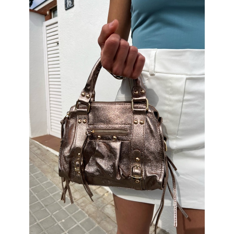 Bolso hebillas piel brillos bronce U