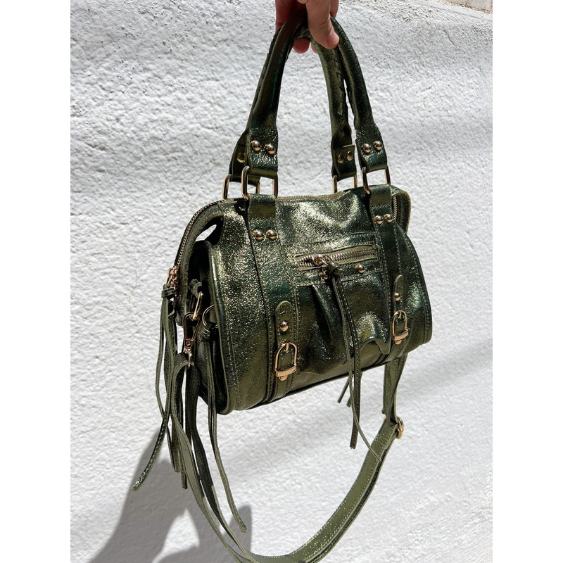 Bolso hebillas piel brillos caqui U