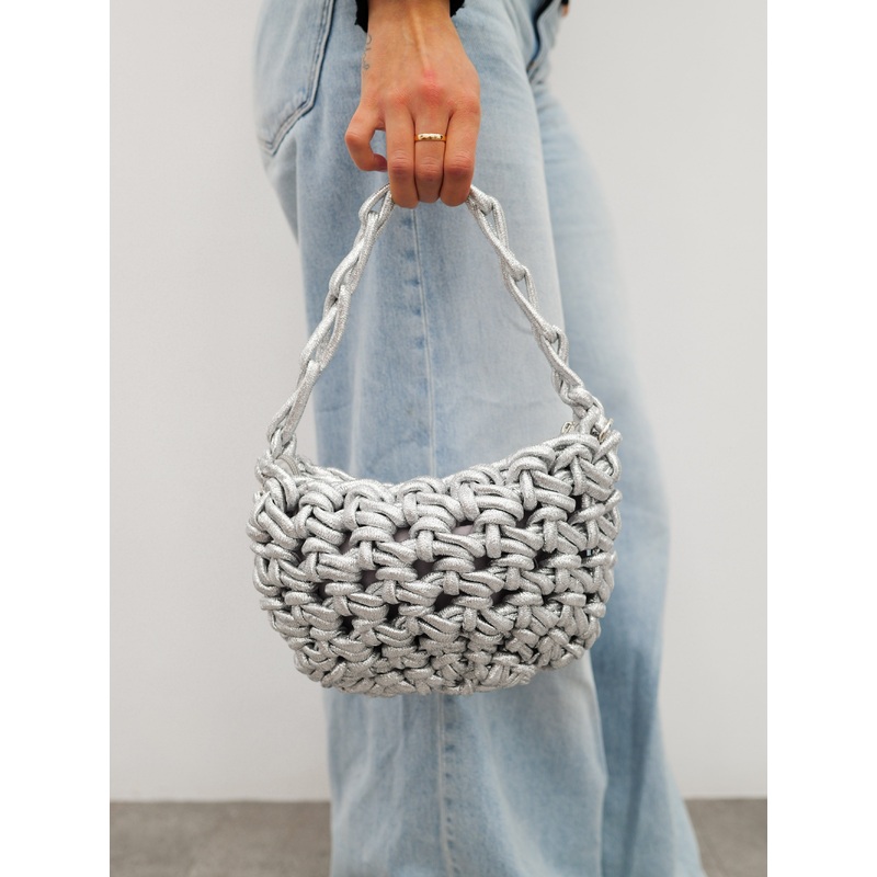 Bolso mano efecto nudo plata U