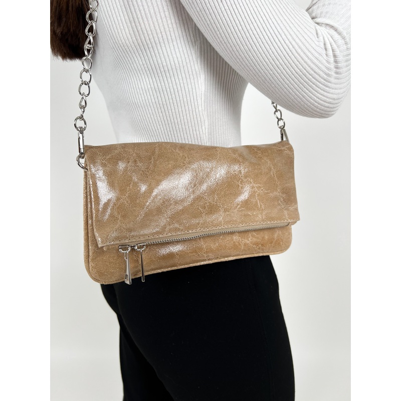 Bolso pequeo de piel, de color marrn , con dos cadenas extraibles de metal entrelazadas con piel, bolsillo plano en la parte delantera, puede llevarse al hombro o cruzado en bandolera.Material: Piel veganaMedidas: 26cm de ancho y 15cm de altoEste articulo