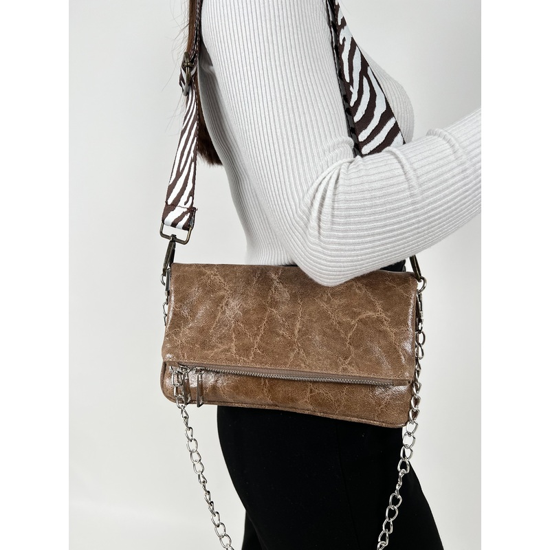 Bolso piel cadenas brillo marron U