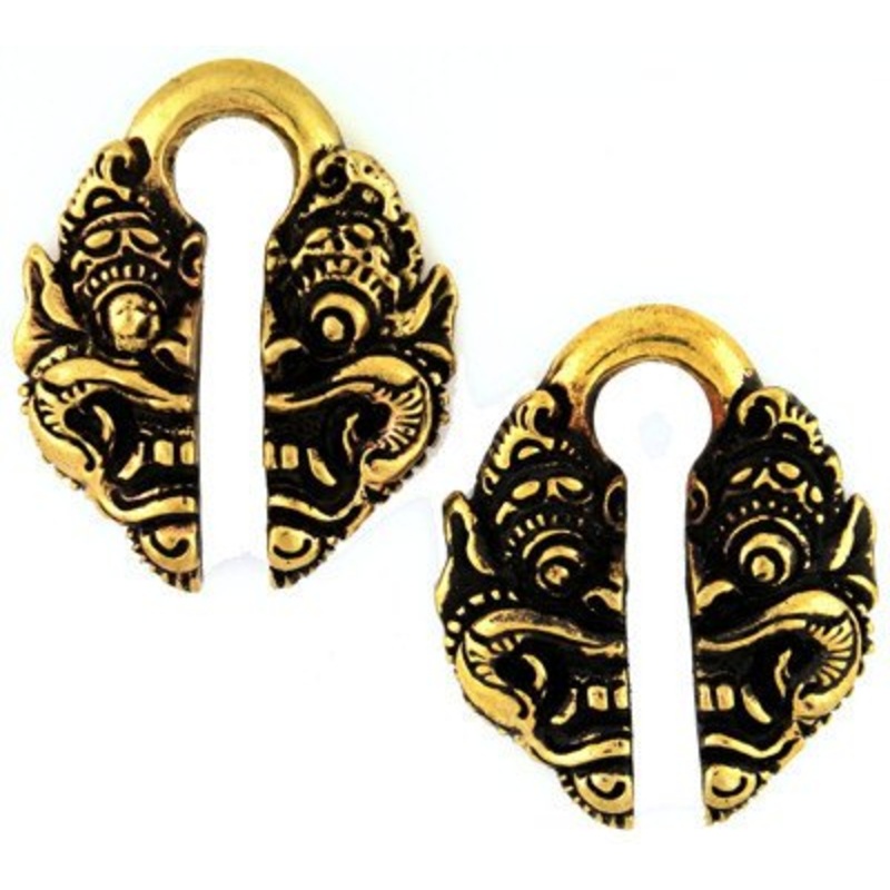 These boma weights are cast from solid yellow brass by Oracle Body Jewelry. They fit stretched ear lobes sized 1/2-inch or larger.Dimensions: 36mm high X 30mm wideWeight: approximately 18 grams each piece