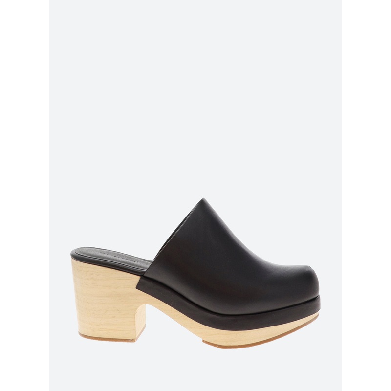 Rachel Comey classic closed-toe clog with a chunky carved wood platform and pebbled leather upper.