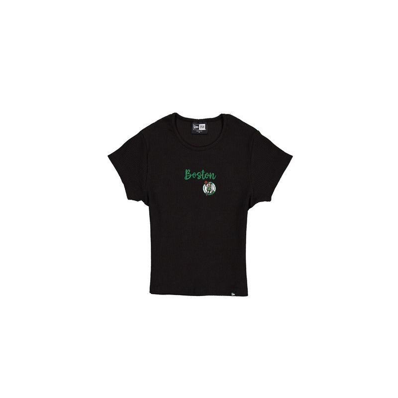 The Boston Celtics Sport Classics Women’s Baby Tee features a chain-stitched Celtics wordmark and an embroidered team logo at the front.